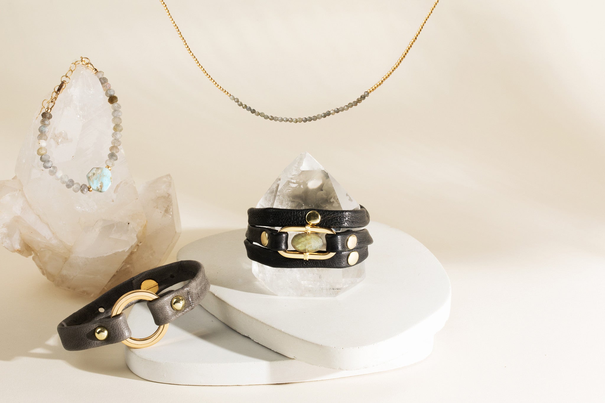 Carrie CI love the quartz crystals in this bracelet, so beautiful and special, the center ring make it a statement piece! I was able to adjust the size easily.