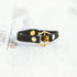 Materials: Lamb leather, gold zinc alloy ring and flat rivets, natural Tigers Eye gemstone.