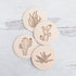 Handmade in our studio, round leather coasters featuring four different laster etched succulent prints. Comes in set of 4.