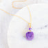 Handcrafted by our artisans, this wire wrapped crystal necklace features a cushion shaped charoite with a amethyst accent stone on an 18" gold cable chain.