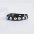 Our Dotty bracelet is another great stacker to complete your arm party! Handcrafted leather band with a row of brushed silver domed rivets.