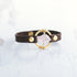 Materials: Lamb leather, brushed gold zinc alloy ring and flat rivets, natural rose quartz.