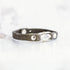 Materials: Lamb leather, silver zinc alloy ring and flat rivets, natural clear quartz.