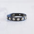 Our Dotty bracelet is another great stacker to complete your arm party! Handcrafted leather band with a row of brushed silver domed rivets.