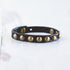 Our Dotty bracelet is another great stacker to complete your arm party! Handcrafted leather band featuring a row of antique brass domed rivets.