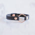 Materials: Lamb leather, rose gold zinc alloy ring and flat rivets.